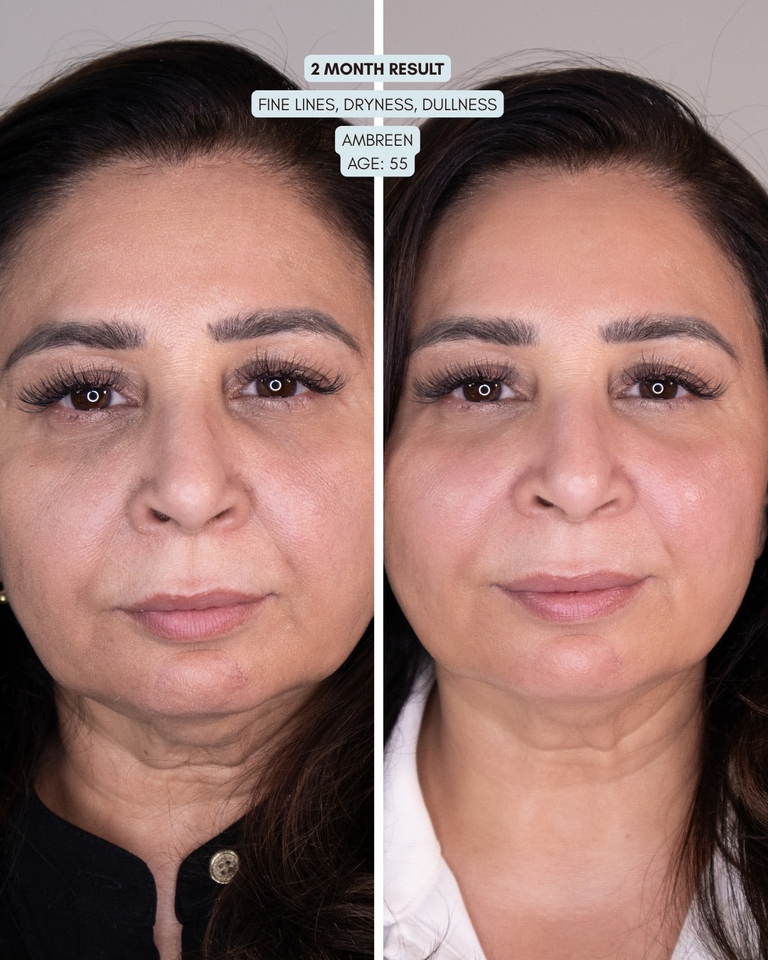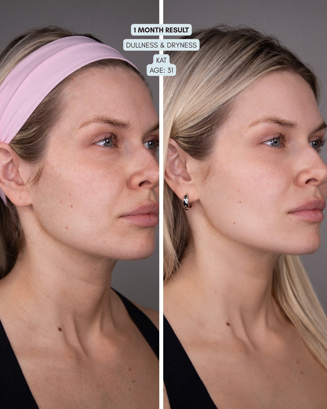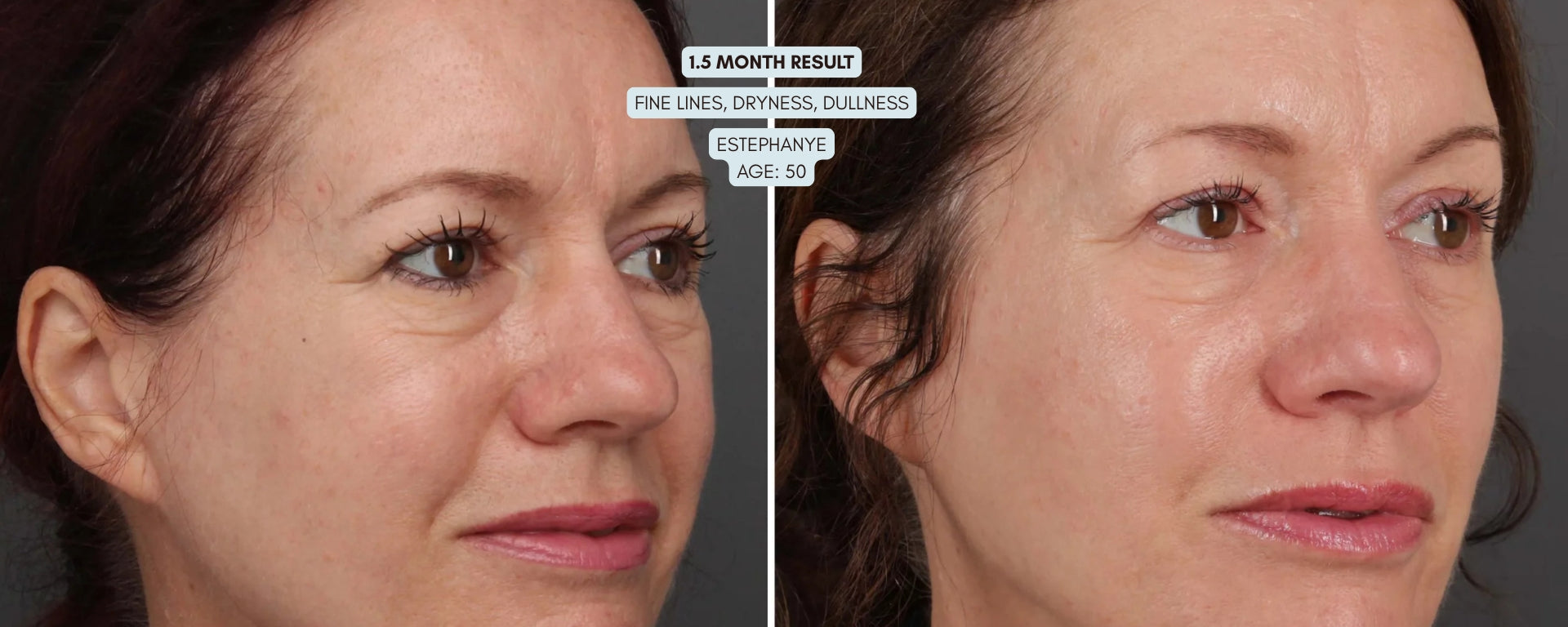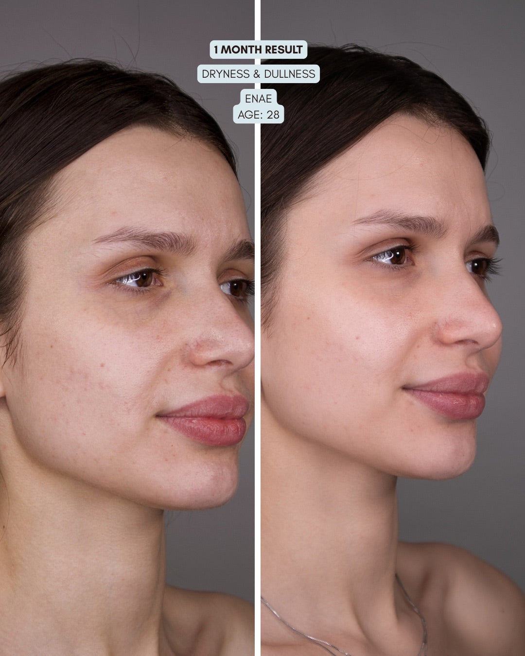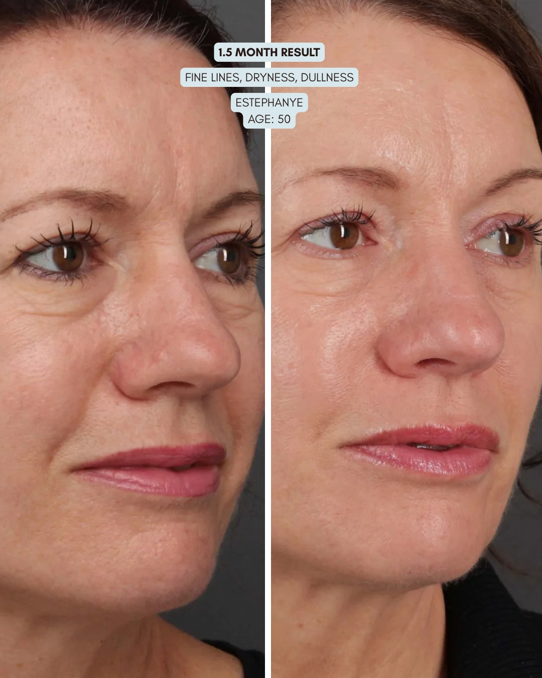 Targets Fine lines, firmness, wrinkles, skin barrier, dark spots, dullness, and dryness.